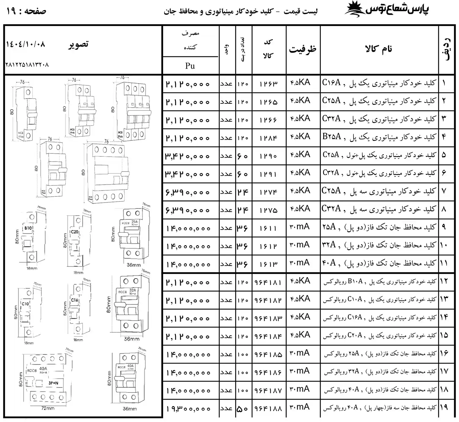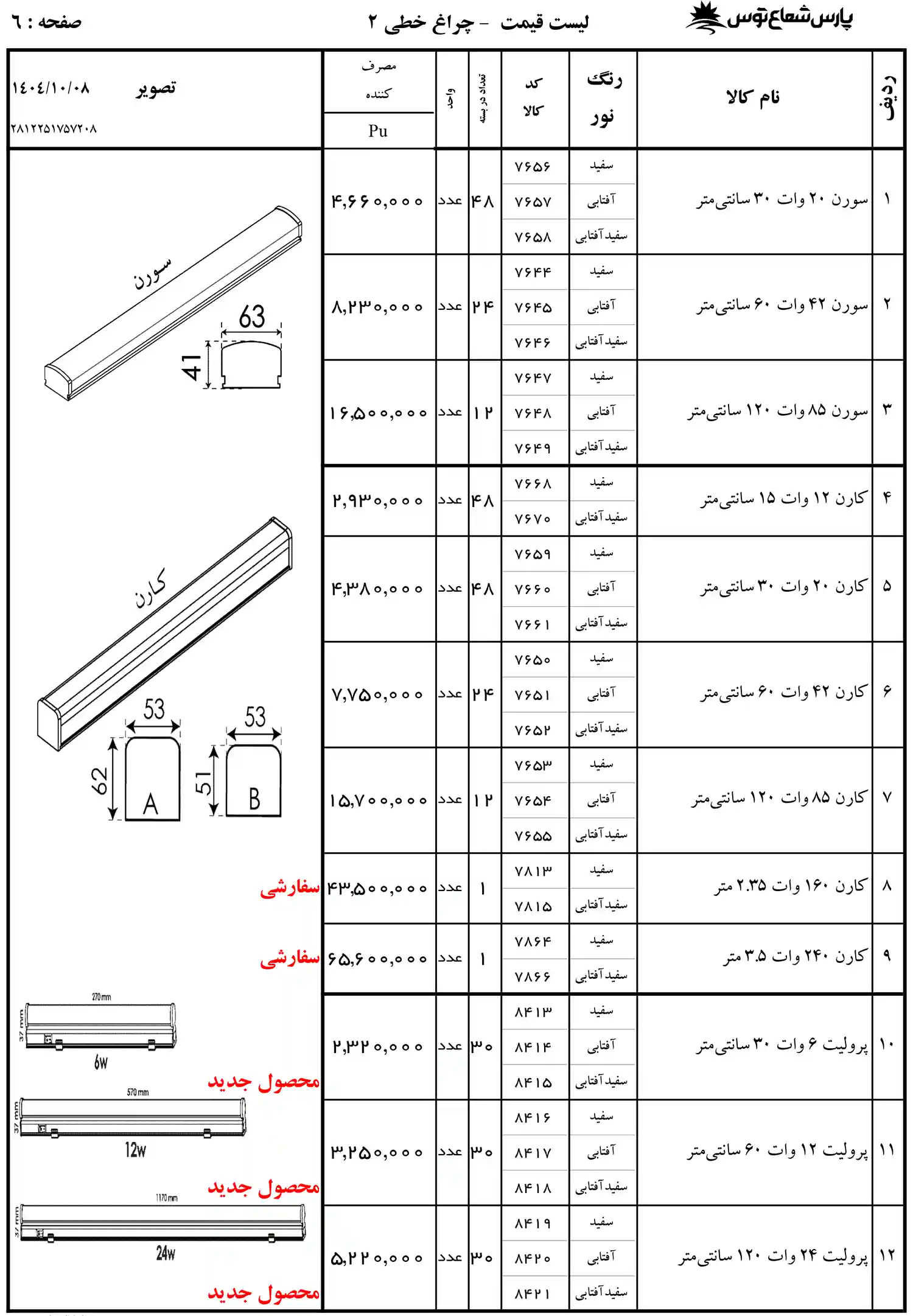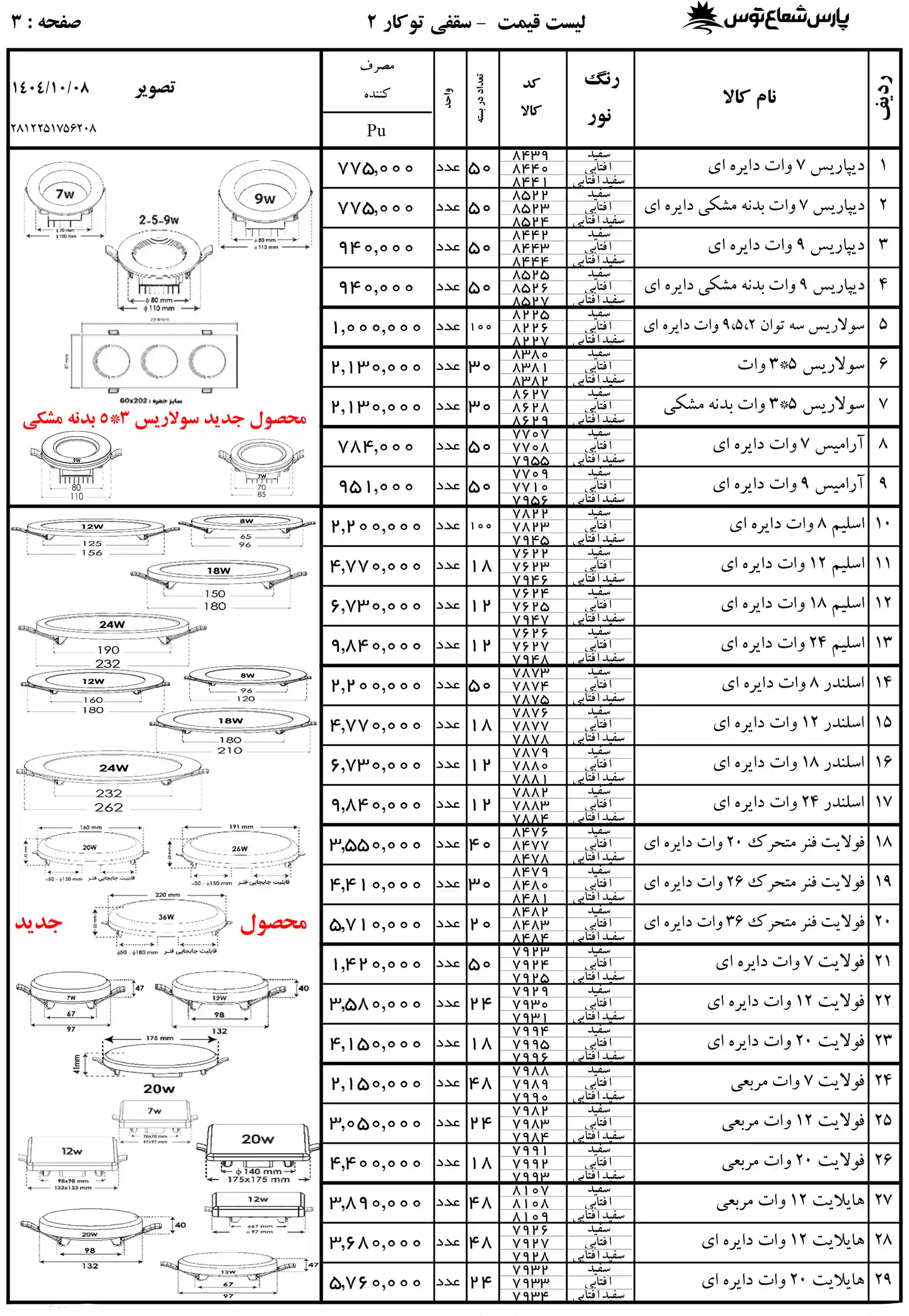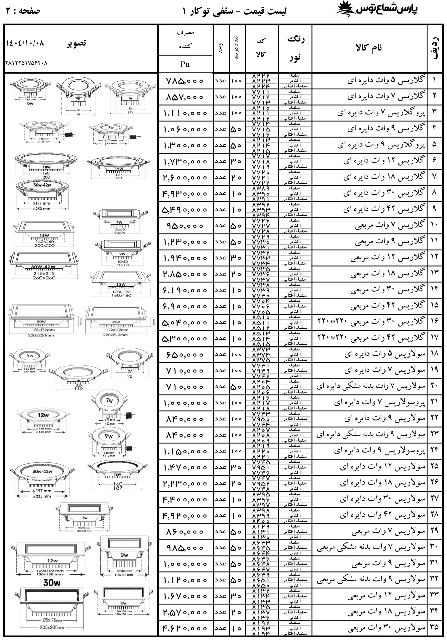 لیست قیمت پارس شعاع توس 1404