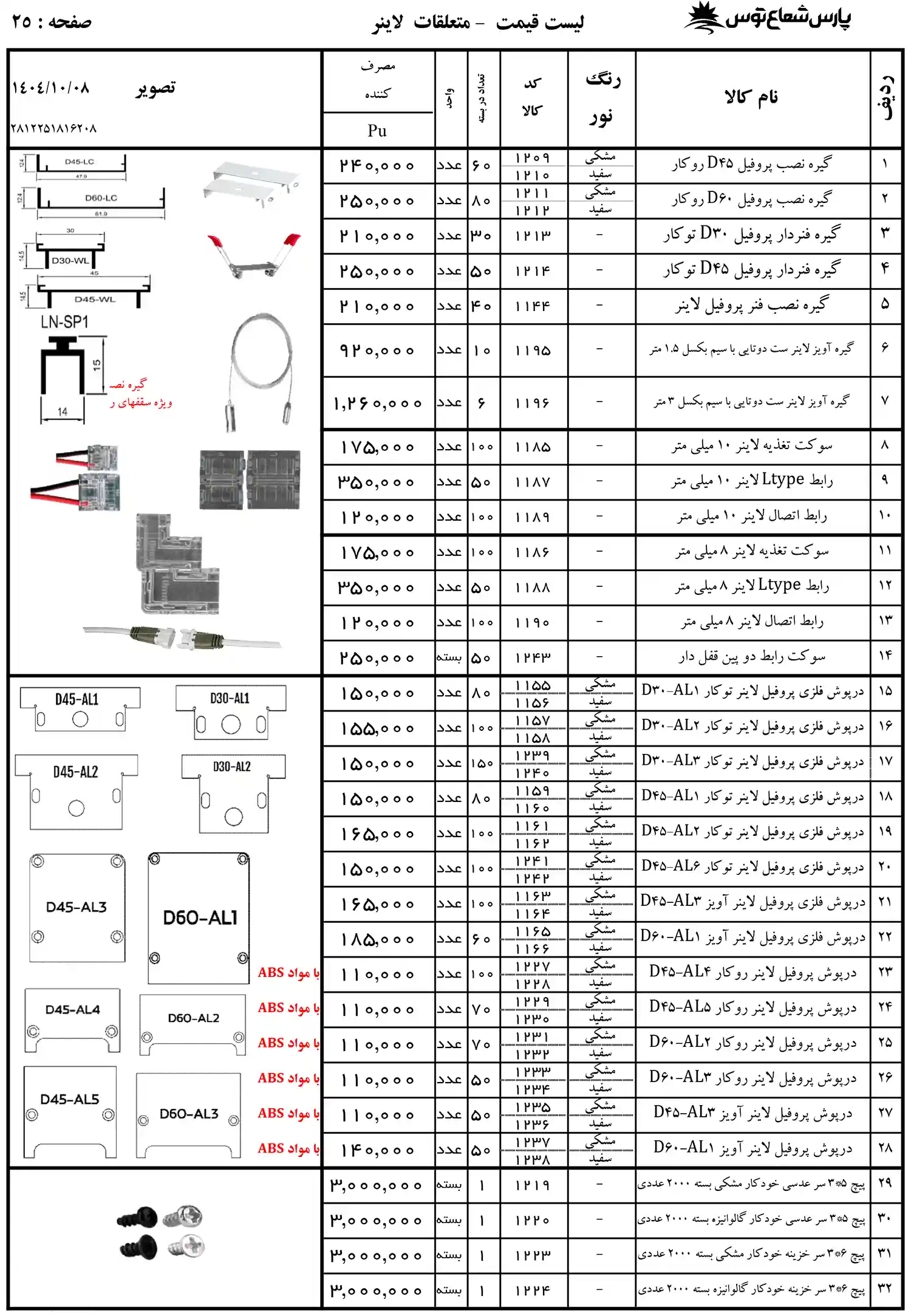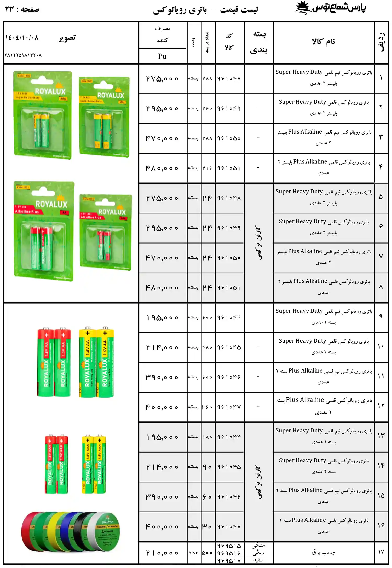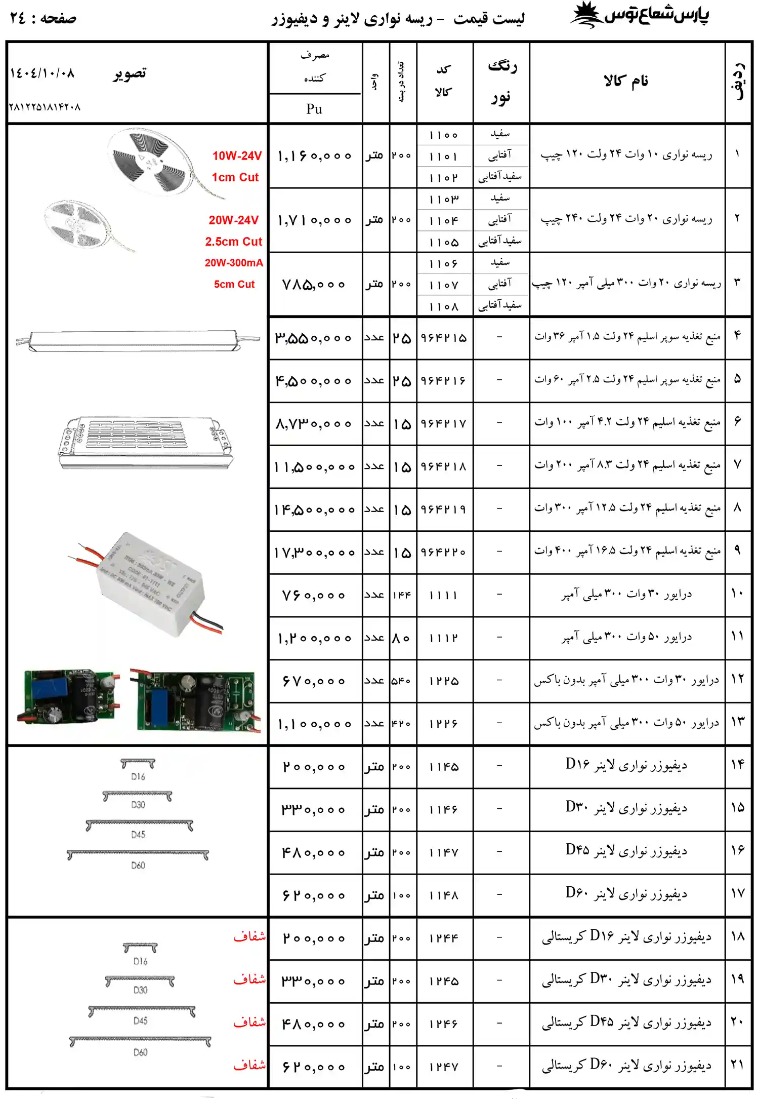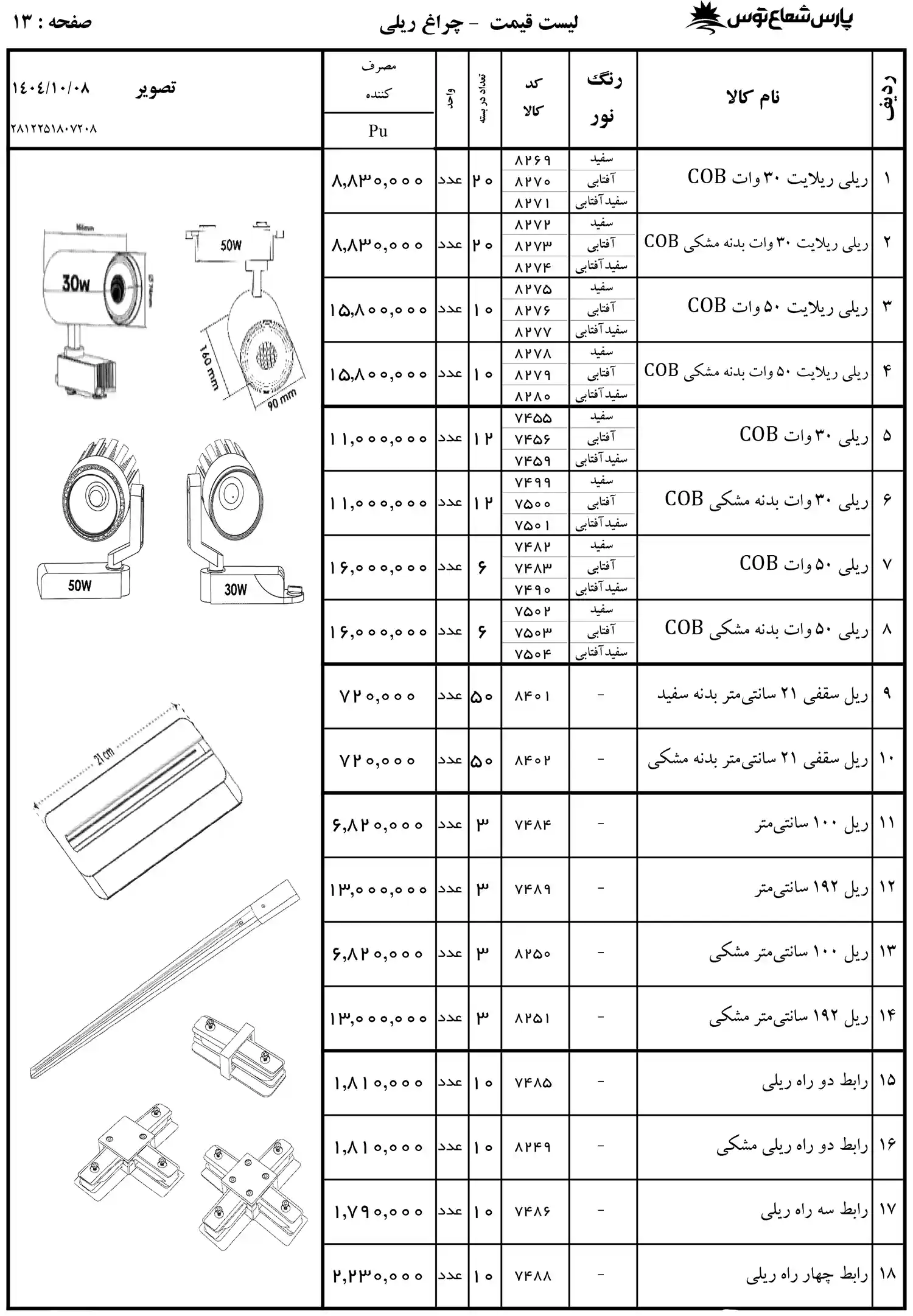 لیست قیمت پارس شعاع توس 1404