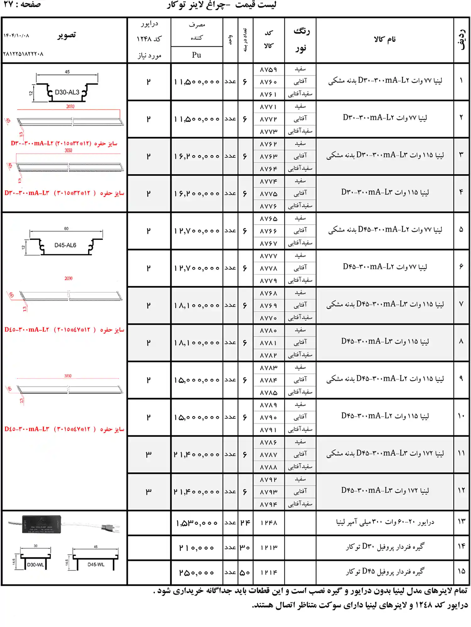 چراغ خطی کارن 160 وات 2.35 سانتی متر 4,350,000