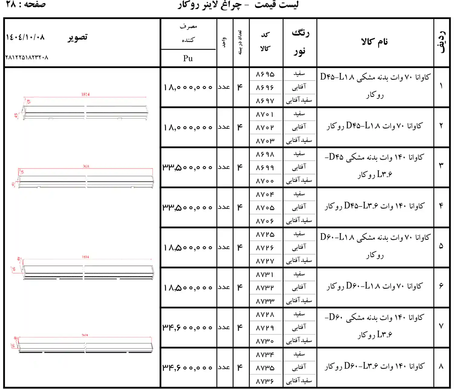 چراغ خطی کارن 240 وات 3.5 سانتی متر 6,560,000