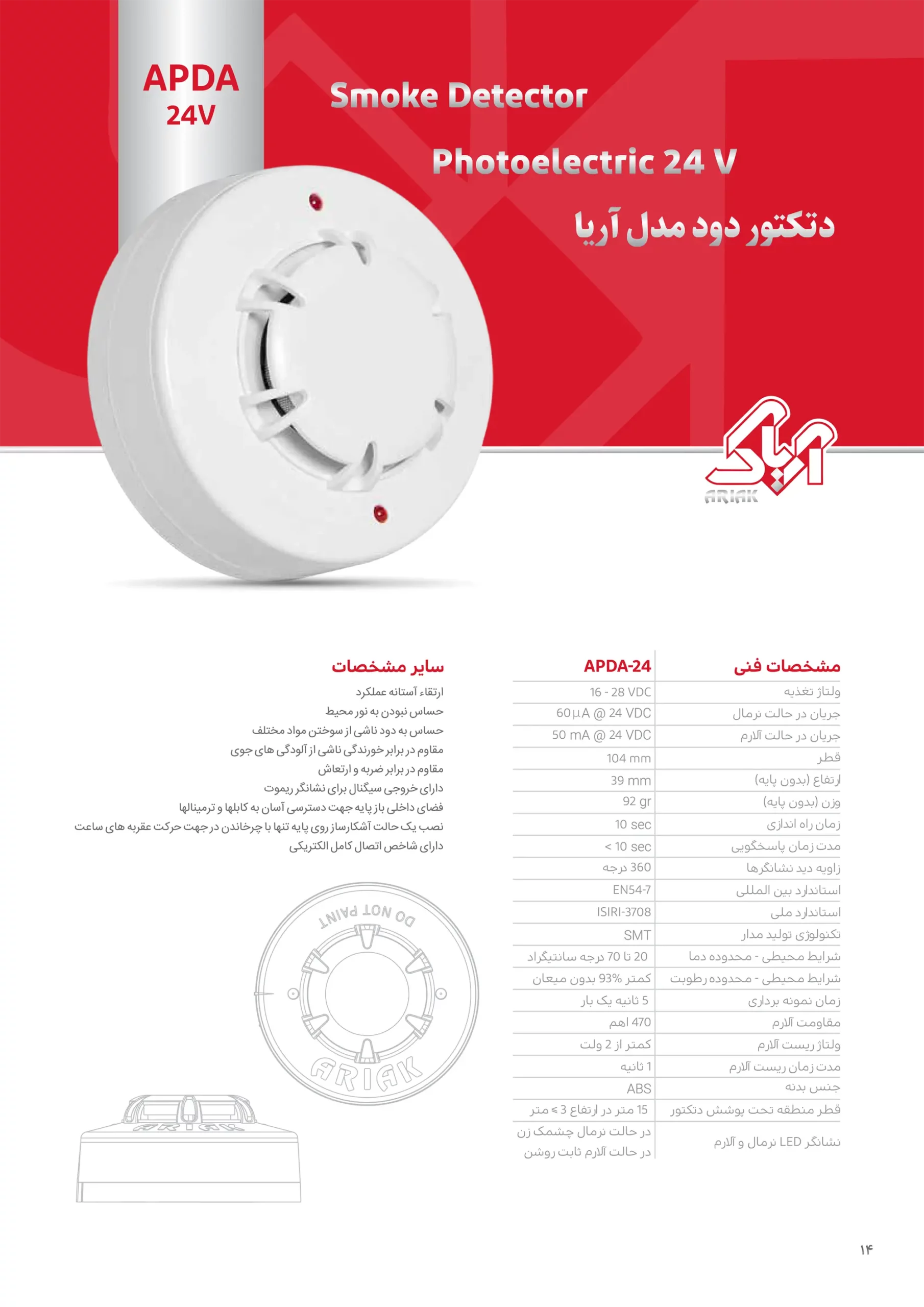 کاتالوگ اعلام حریق آریاک از کامل ترین و کاربردی ترین منابع برای آشنایی با محصولات این برند است. این کاتالوگ با ارائه اطلاعات دقیق مانند مشخصات فنی و تصاویر محصولات به مصرف کنندگان در انتخاب بهترین محصول، مطابق با نیاز خود کمک می کند. آریاک برند معتبری است که سال ها است با تولید سیستم های اعلان حریق به یکی از بهترین گزینه های قابل اعتماد برای پروژه های ساختمانی تبدیل شده است. در این کاتالوگ تمامی محصولات مانند انواع مرکز کنترل، دتکتورهای دودی حرارتی، آژیر، فلاشر و ریموت در مدل های مختلف به صورت کامل معرفی شده اند. وجود مشخصات فنی مانند ولتاژ کاری، جریان مصرفی، نوع سنسور، نحوه نصب، شرایط محیطی، وزن، ابعاد و دیگر قابلیت ها در کاتالوگ اعلام حریق آریاک باعث شده کاربران بدون نیاز به منبع دیگری اطلاعات کاملی از محصولات را در اختیار داشته باشند.