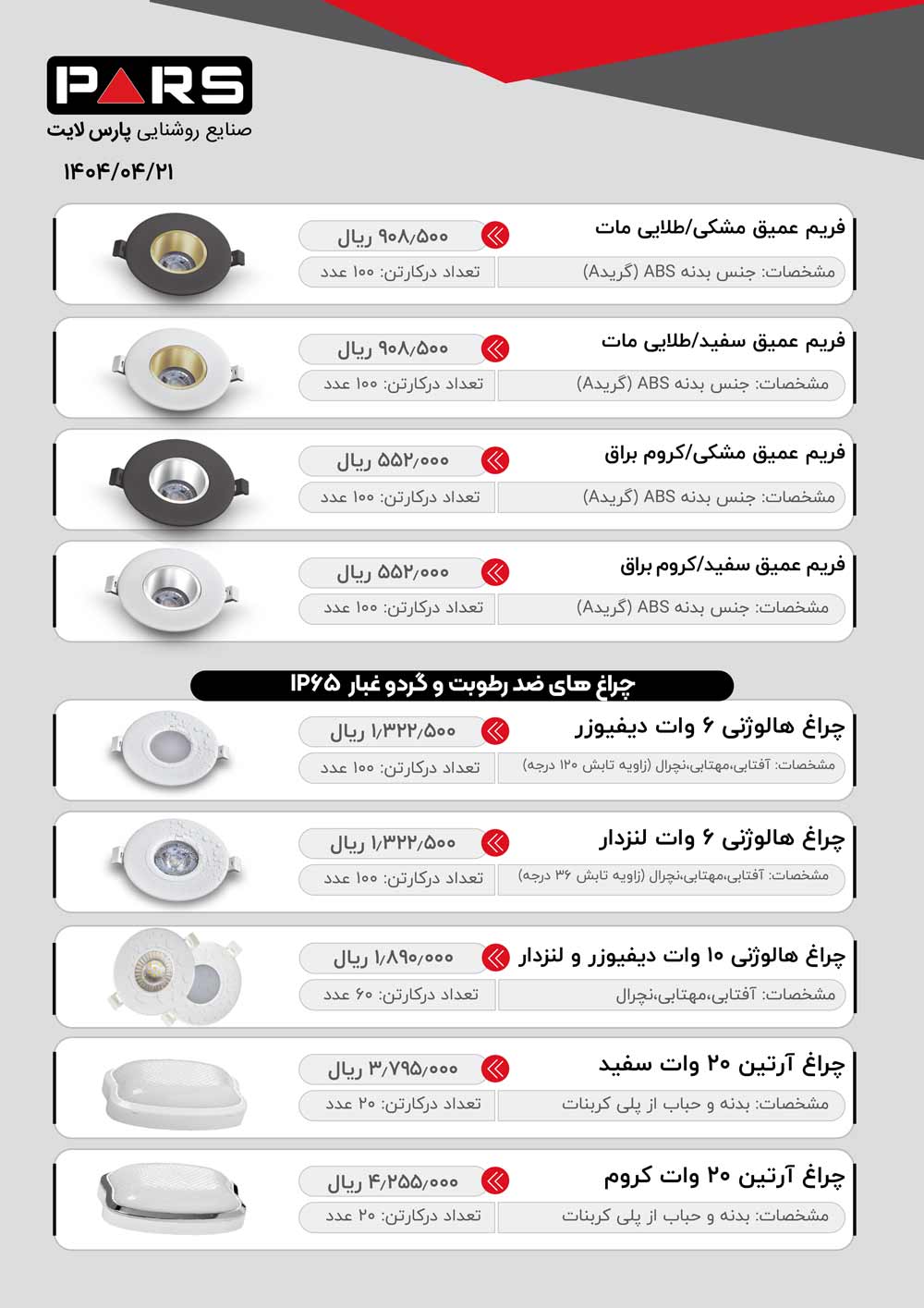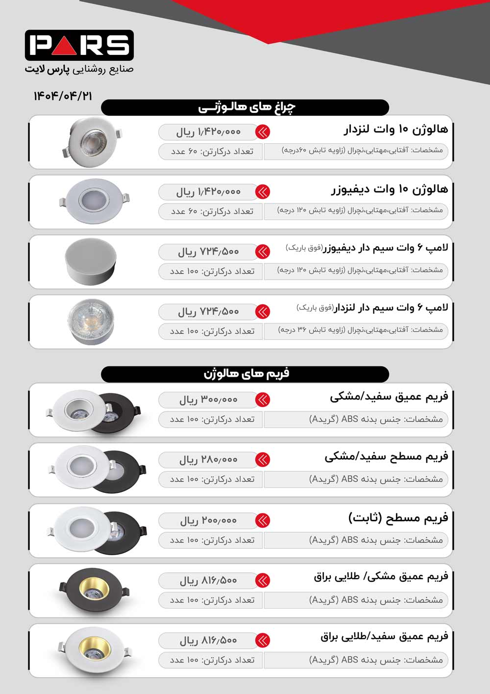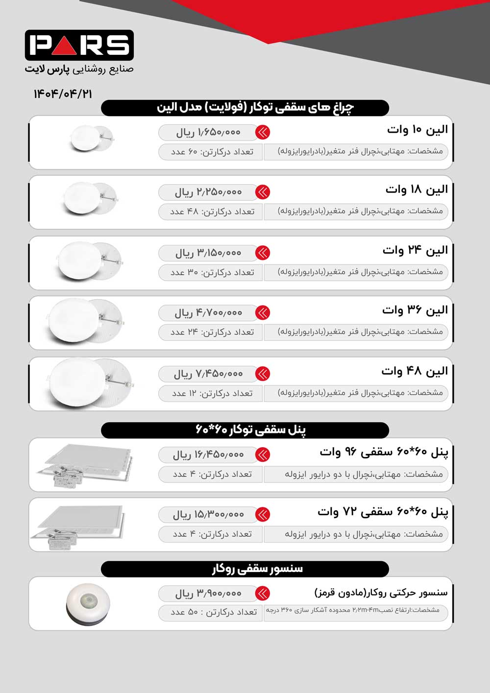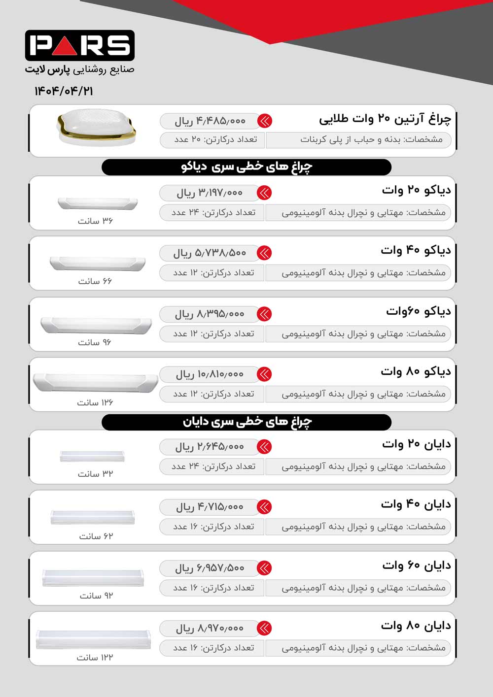 لیست قیمت پارس لایت
