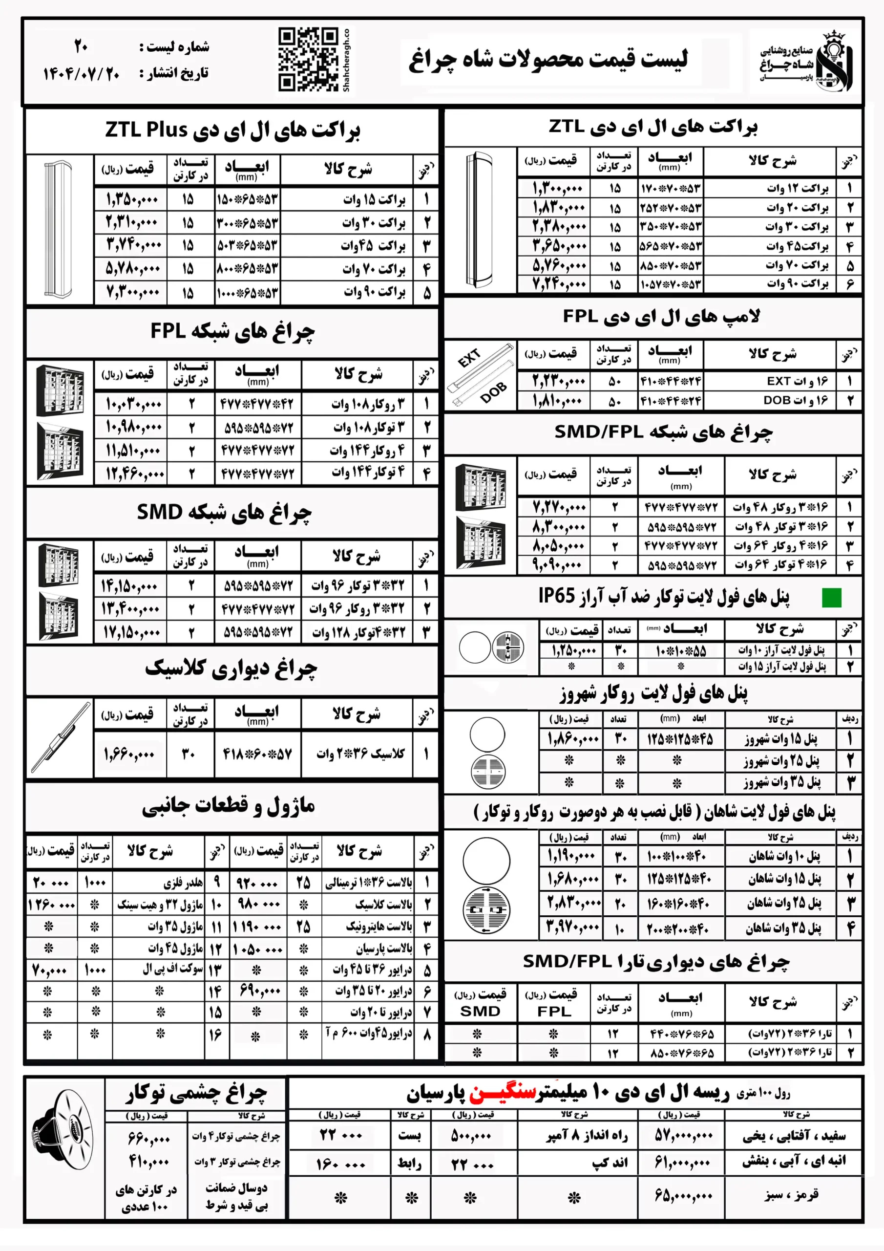 » کاتالوگ و لیست قیمت » لیست قیمت برند ها » لیست قیمت شاهچراغ پارسیان