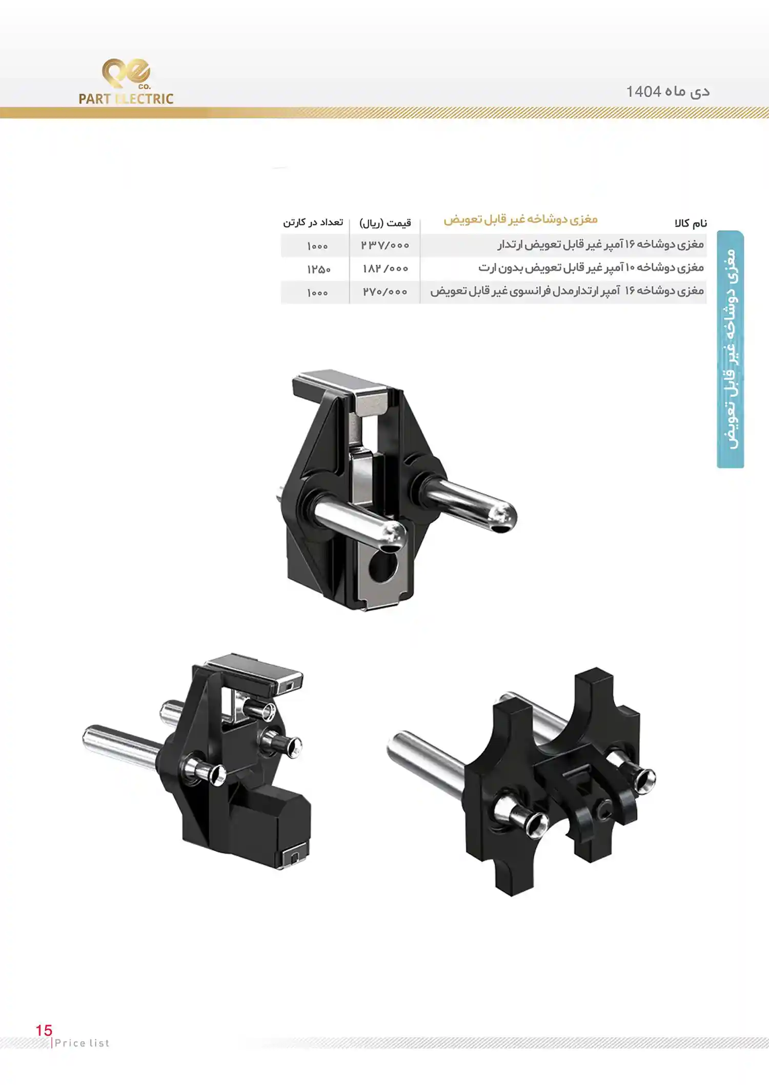| مغزی دو شاخه 16 آمپر ارتدار مدل فرانسوی غیر قابل تعویض | - | 27,000 |