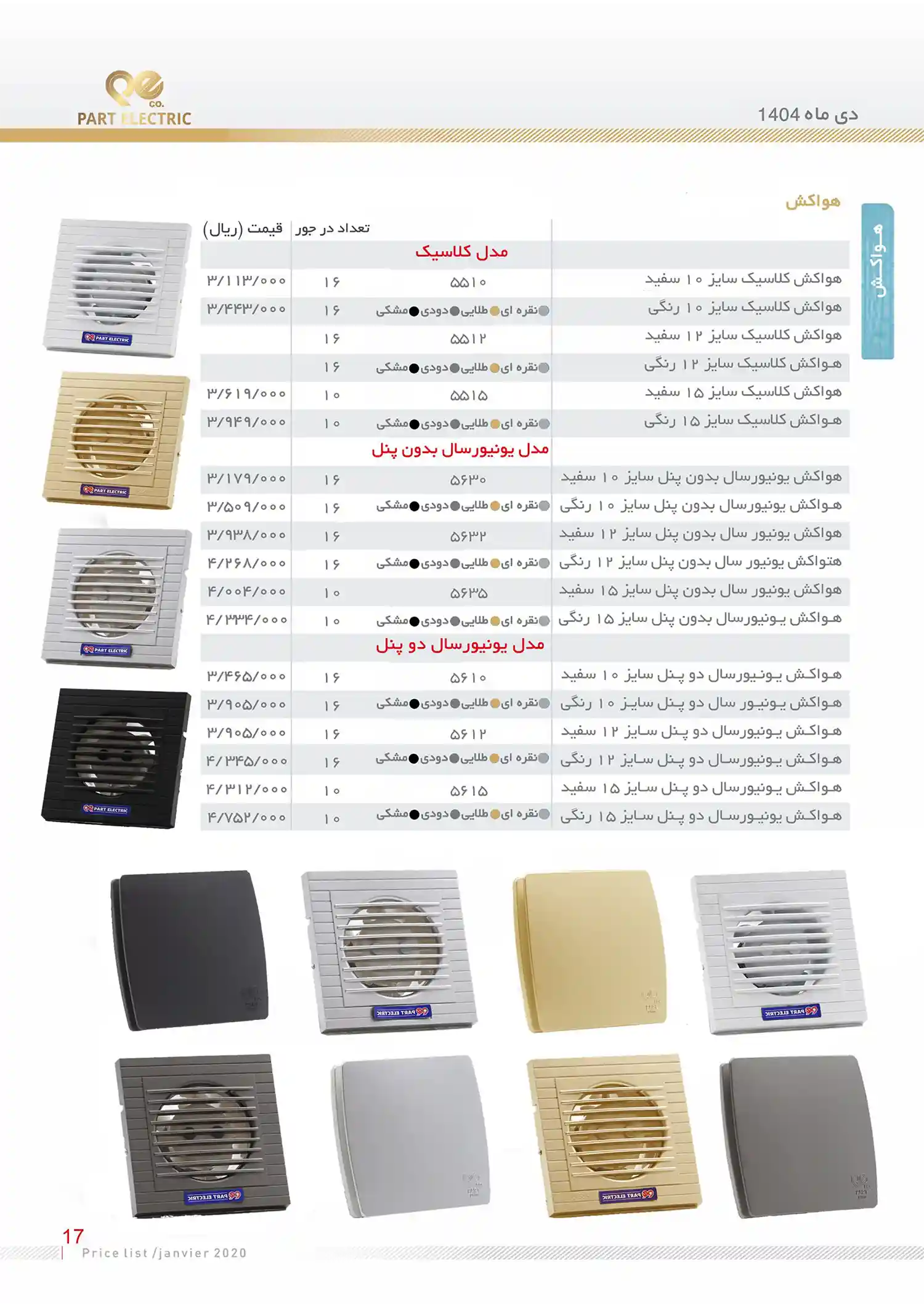 | هواکش کلاسیک سایز 15 رنگی | 5515 | 394,900 |